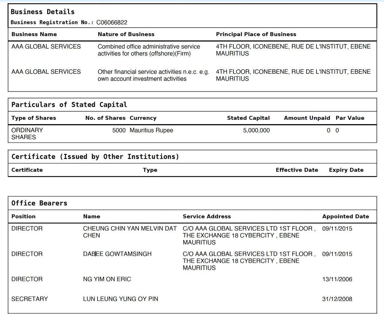 What he disclosed was pointed. Corporate filings show that Receiver Gowtamsingh Dabee, installed by the Supreme Court of Mauritius in February to restore AfriNIC’s governance, also serves as a director of AAA Global Services Limited, a management company incorporated in Mauritius in 2006. AAA Global Services counts among its clients Cloud Innovation Ltd, the very firm that has spent years suing AfriNIC in Mauritian courts.